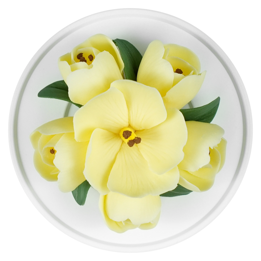 Materials: Flower-100% ceramic, Base-100% Plaster, Acrylic Lid, Paint-free